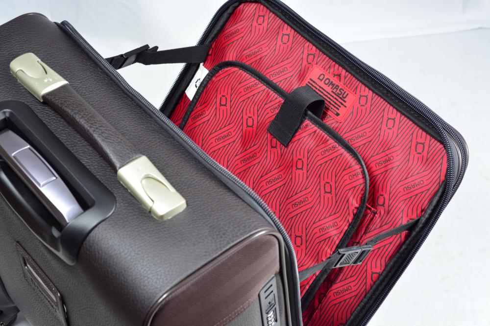 شنطة سفر رجال الأعمال OMASU شنطة بلون الاسود و الكوفي فاخرة رائعة لرحلات العمل منظمة بشكل مثالي مقاومة للصدمات مجهزة بجيب مخصص للابتوب وأحزمة لتنظيم أمتعتك.